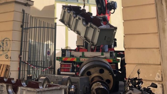 Per quanto trapela dalle poche notizie sull'andamento dei lavori in corso per la revisione ventennale, che oramai sono in corso da oltre un anno, risulta che non è stata ancora consegnata la puleggia motrice, essendo stata consegnata nei giorni scorsi solo quella traente, e quindi che allo stato non si può ancora procedere all'assemblaggio dell'argano motore che rappresenta il cuore del sistema di trasporto pubblico su gomma. Il vecchio argano fu smontato è portato via alla fine del mese di ottobre dell'anno scorso ma, a distanza di un anno, non risultata che tutti i pezzi del nuovo argano siano stati ancora consegnati e disponibili per il montaggio. Peraltro i dieci mesi dell'appalto sono già scaduti da due mesi, visto che la consegna dei lavori è avvenuta agli inizi di ottobre 2023 ".