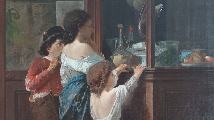 Nel percorso di visita, inoltre, sarà possibile ammirare altri dipinti come Anton Sminck van Pitloo “Paesaggio da Mergellina” (1827), Giovanni Ponticelli “Il vero supplizio di Tantalo” (1871), Francesco Dell’Erba “Le beffe dell’ubbriaco” (1878), Giuseppe Sciuti “La pace domestica” (1870), Maria Spanò “Ricordo di Sorrento” (1872), Gustavo Mancinelli “Corradino e suo cugino Federico nel momento prima di essere condotti al patibolo” (1868) o sculture come quella sullo scalone monumentale di Alberto Ferrer “Caddi come corpo morto cade” del primo decennio del XX secolo in bronzo patinato o il gesso bronzato del 1940 di Luigi Martorelli “Divinità Marina”. Nel corridoio del primo piano una sequenza di 20 fotografie in bianco e nero dell’Archivio Parisio-Troncone che documentano la distruzione del rione Carità e la sua ricostruzione post-bellica.