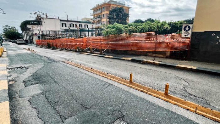 Ma la cosa che lascia più perplessi e che riguarda appunto la sicurezza dei pedoni in questo tratto di strada - sottolinea Capodanno - è che da mesi, almeno da aprile scorso, un tratto di marciapiede di circa 20 metri, posto sul lato destro scendendo da via Cimarosa, a confine con il muretto che delimita un'area, dove originariamente doveva nascere un parco a disposizione dei tanti bambini della zona ma che poi invece è stata inopinatamente trasformata in un parcheggio, è recintato per tutta la sua ampiezza con una serie di tiranti che sostengono il muretto in questione, sicché i pedoni sono costretti ad attraversare questo tratto camminando sulla carreggiata con i possibili rischi conseguenti".