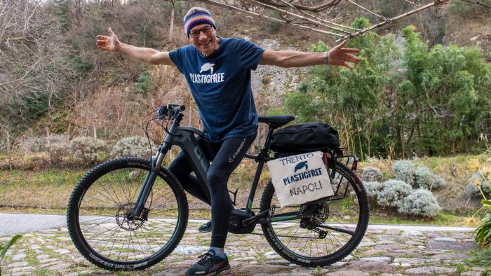 È partito oggi all’alba in bicicletta da Padergnone, frazione del Comune di Vallelaghi in Trentino, e punta a raggiungere in solitaria Napoli in tempo per la cerimonia di premiazione dei “Comuni Plastic Free” che si terrà sabato 8 marzo al Teatro Mediterraneo.