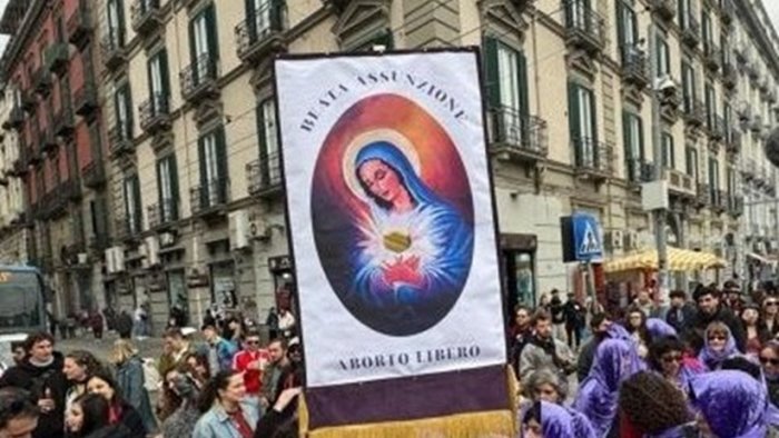 "In questi giorni, un'immagine utilizzata in una manifestazione pubblica celebrativa della Giornata Internazionale della Donna, ha suscitato turbamento in molti. La rappresentazione della Vergine Maria alla quale è stato sostituito il cuore con una pillola abortiva è stata infatti percepita da tanti come un'offesa alla fede e ai valori più profondi che animano la vita di milioni di persone". Così il cardinale di Napoli, don Mimmo Battaglia, in merito allo stendardo mostrato ieri in occasione della manifestazione di 'Non una di meno', a Napoli. "Viviamo in una società democratica, in cui la libertà di espressione è un diritto fondamentale e inviolabile. È giusto e doveroso che ciascuno possa manifestare le proprie idee, anche quando queste riguardano temi delicati e divisivi. Tuttavia, ogni diritto - sottolinea - porta con sé anche una responsabilità: quella di esprimersi senza ledere la sensibilità degli altri, senza ferire ciò che per molti è sacro, senza trasformare il dibattito in uno scontro che alimenta soltanto divisione e risentimento".