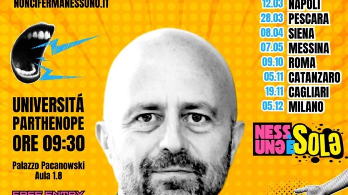 L’undicesima edizione del tour motivazionale di Luca Abete, Non ci ferma nessuno partirà il 12 marzo dall’Università “Parthenope” di Napoli - Palazzo Pacanowski - Aula 1.8 - ore 9:30.