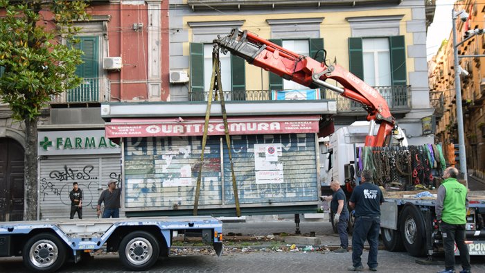 Diventa operativo il piano di demolizione delle edicole che rappresentano un pericolo per l’incolumità pubblica, per il quale il Comune di Napoli ha stanziato 45mila euro. Stamattina alle 6 si è proceduto con la rimozione dell’edicola in via Foria, segnalata dalla Prefettura e messa in sicurezza dai Vigili del Fuoco.