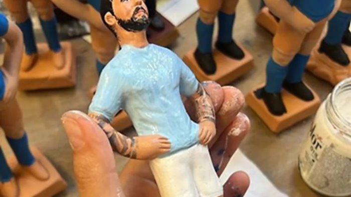 La statuina, in fase di modellazione nel celebre laboratorio della famiglia Ferrigno, lo ritrae col dito puntato al cielo e la maglia biancoceleste, ma con un dettaglio che solo Napoli poteva pensare: il basamento azzurro con inciso "Grazie Pedro". "E' un omaggio sincero - spiega l'artigiano, erede di una tradizione lunga due secoli - Pedro e' entrato senza volerlo nel cuore dei napoletani. Ha fatto quello che serviva: due gol all'Inter, e ci ha lasciati padroni del nostro destino. A Napoli non dimentichiamo chi ci da' una mano, anche se veste un'altra maglia".