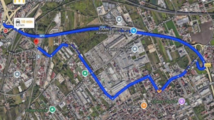 - Uscita consigliata allo svincolo successivo della SP1 verso Nord per Via Procida (indicazioni Milano/Napoli/Bari/Pomigliano)