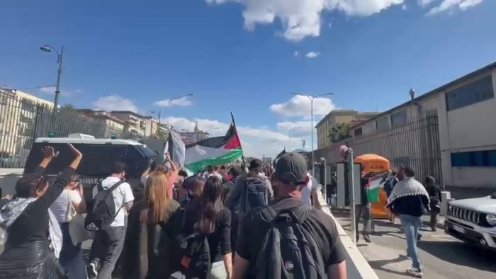 Da questa mattina, migliaia di manifestanti sono scesi in piazza a Napoli per esprimere solidarietà al popolo palestinese e partecipare allo sciopero generale. Il corteo si è diretto verso il porto, entrando dal varco Pisacane. Nonostante un primo blocco da parte delle forze di polizia, durato circa mezz’ora, i manifestanti sono riusciti a superarlo e procedere verso i moli dove attraccano le navi commerciali.