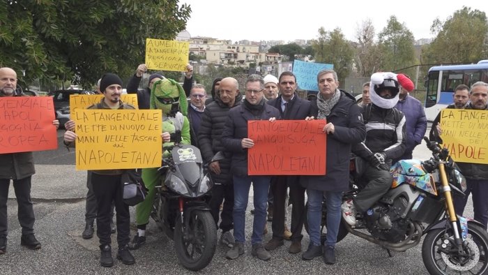 - Un corteo lento di auto e moto ha attraversato la Tangenziale di Napoli per protestare contro l'annunciato aumento del pedaggio da 1 a 1,05 euro. La manifestazione è stata promossa dal deputato di Alleanza Verdi-Sinistra Francesco Emilio Borrelli, che nell'occasione ha rilanciato la sua battaglia "per la liberalizzazione del pedaggio sull'unica autostrada interna a una grande città europea ancora a pagamento". Il raduno si è tenuto nel quartiere napoletano Fuorigrotta, davanti alla chiesa di San Paolo Apostolo in via Bakunin, a pochi metri dall'ingresso della Tangenziale. Da lì il corteo si è mosso lungo l'intero asse autostradale fino ai caselli in direzione Agnano "per denunciare - hanno detto gli organizzatori - una situazione ormai insostenibile per migliaia di cittadini".