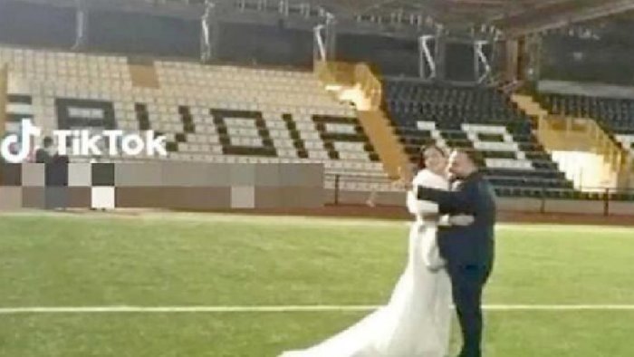 Lei in abito bianco con pelliccia per ripararsi dal gelo, lui in completo scuro e sciarpa al collo. Non è il set di un film, ma il fuori programma che ha scosso Torre Annunziata sabato sera. Una coppia di neo-sposi, accompagnata da un manipolo di tifosi, si è introdotta abusivamente nello stadio comunale Giraud per scattare le foto dell'album di nozze sotto i riflettori del campo. Il video della "serata di gloria", finito dritto sui social, ha però trasformato il brindisi in un caso giudiziario: il sindaco Corrado Cuccurullo ha presentato denuncia alla polizia per l'accesso non autorizzato alla struttura pubblica.