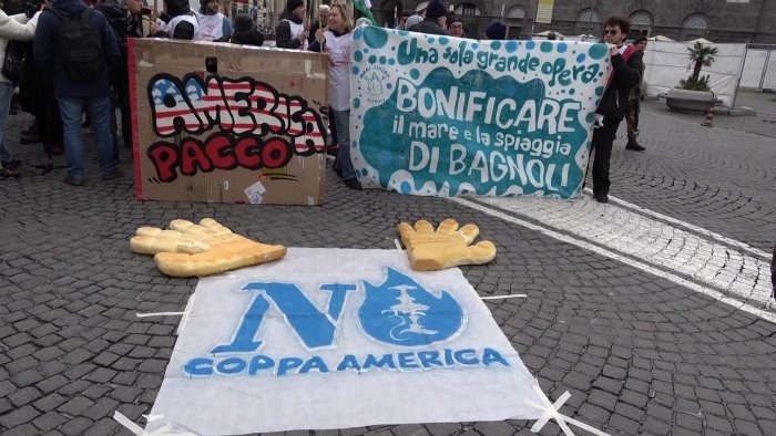 Ma all’esterno di un Palazzo Reale blindato, gli antagonisti di "Mare libero" e dei comitati per Bagnoli hanno simbolicamente presentato anche il loro team, Partenope ribelle, un team chiaramente e provocatoriamente di dissenso contro l’America’s Cup che definiscono "una grande bugia al servizio delle multinazionali e che tomberà per sempre il sogno della bonifica del mare e della spiaggia".