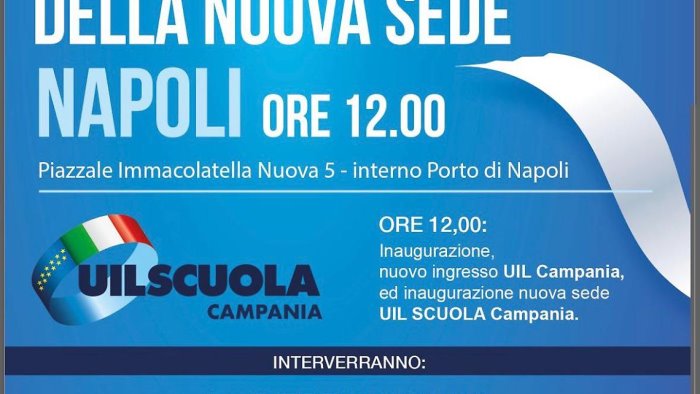 Giovedì 26 febbraio alle ore 12.00, presso Piazzale Immacolatella Nuova 5, all’interno del Porto di Napoli, si terrà l’inaugurazione della nuova sede della UIL Scuola Campania, che da questa data si trasferisce ufficialmente nello stesso edificio che ospita già la segreteria confederale della UIL Campania.