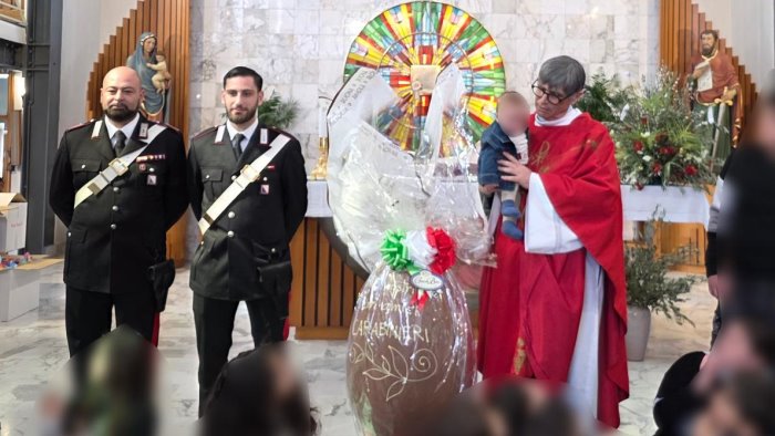 Nella Chiesa di San Paolo Apostolo, su iniziativa di don Maurizio Patriciello, i bambini del Parco Verde hanno donato un uovo di Pasqua ai Carabinieri della Compagnia di Caivano.