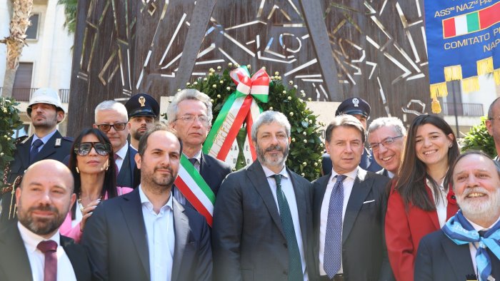 "E' una festa divisiva per chi non vuole riconoscere i valori della convivenza democratica, la liberazione dalla opaca schiavitù repressiva nazifascista, ma non c'è possibilità di dividersi sul fatto che abbracciamo i valori della convivenza democratica e della nostra Costituzione. La Costituzione è chiaramente antifascista". Così Giuseppe Conte, presidente M5S, alla cerimonia per la Festa della Liberazione in Piazza Matteotti a Napoli.