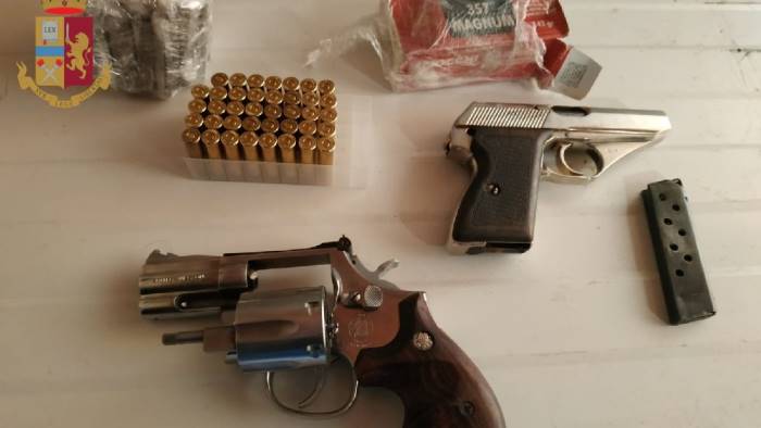 Gli agenti della squadra mobile di Napoli hanno effettuato un controllo in un locale in disuso di via Vecchia San Rocco dove hanno rinvenuto una pistola a tamburo calibro 357 Magnum, 39 cartucce dello stesso calibro, una pistola semiautomatica calibro 7,65 con matricola abrasa e 55 stecche di hashish del peso complessivo di circa 300 grammi.