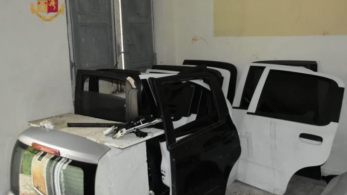 I poliziotti sono entrati in un manufatto dove hanno trovato la vettura segnalata e numerose parti di veicoli prive di etichettatura identificativa.
