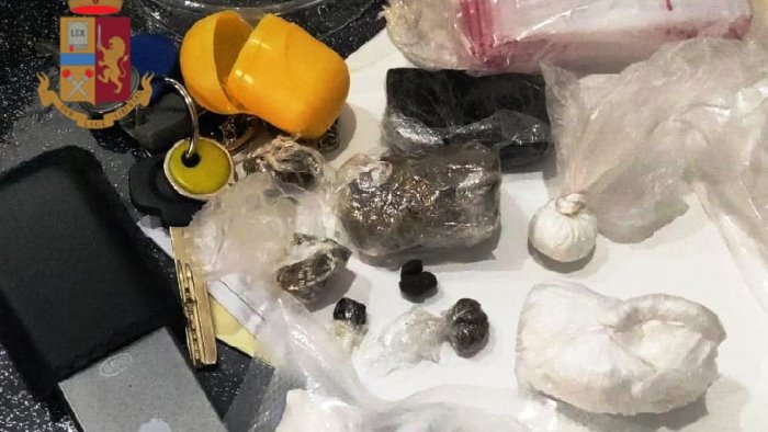 All'arrivo dei poliziotti un uomo ha lanciato dalla finestra di un appartamento un bilancino di precisione e una custodia per occhiali contenente diversi involucri con circa 61 grammi di hashish, una bustina con 38 grammi circa di cocaina e un involucro con 2 grammi circa di marijuana; inoltre, nell’appartamento hanno rinvenuto diverso materiale per il confezionamento della droga ed hanno accertato la presenza di un sistema di videosorveglianza a circuito chiuso che inquadrava l’esterno dell’abitazione e lo hanno sequestrato.