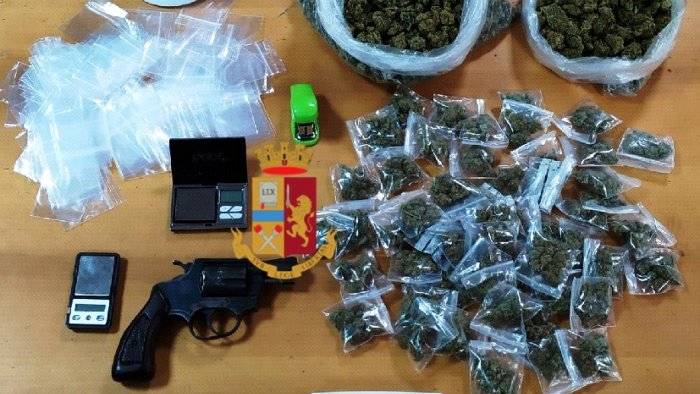 Gli agenti, con il supporto del personale del Commissariato di Portici-Ercolano, presso l’abitazione dell’aggressore a Portici, nascosta in un vano sopra una finestra, hanno recuperato l’arma, una pistola a tamburo con matricola abrasa completa di 4 cartucce calibro 38 special, mentre, in un vano ricavato sotto la vasca da bagno, hanno trovato 53 bustine contenenti 100 grammi circa di marijuana, 2 buste con 215 grammi circa della stessa sostanza, 3 bilancini e diverso materiale per il confezionamento della droga; infine, è stato rinvenuto un sistema di video sorveglianza con una telecamera che inquadrava l’esterno dell’abitazione.