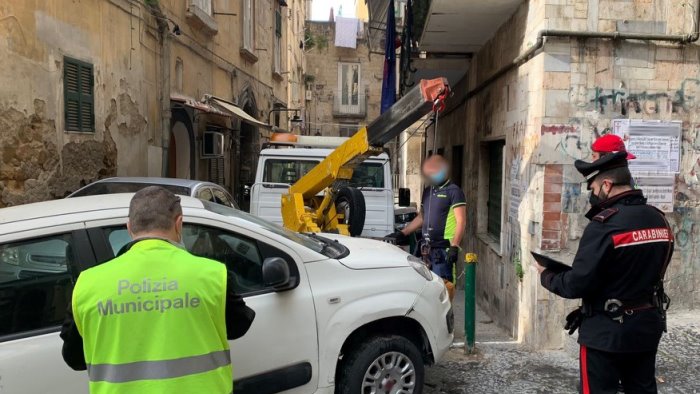 I militari della stazione quartieri spagnoli insieme agli agenti della polizia locale hanno svolto un servizio mirato nel quartiere. Rimosse 10 auto e 5 motocicli abbandonati in strada e privi della copertura assicurativa.