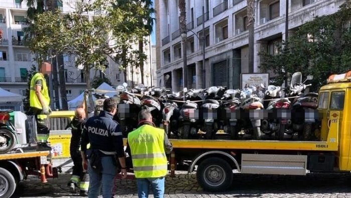 I Nibbio dell’ufficio prevenzione generale e gli agenti dell’ufficio veicoli abbandonati della polizia municipale hanno effettuato un servizio in via Concezione a Montecalvario, piazzetta Martinelli, via Francesco Girardi, via Politi, vicoletto II del Consiglio, vico I Concezione a Montecalvario, vicoletto I Consiglio, vico Lungo San Matteo e vico Due Porte a Toledo dove hanno sequestrato 33 motorini parcheggiati in strada privi di copertura assicurativa.
