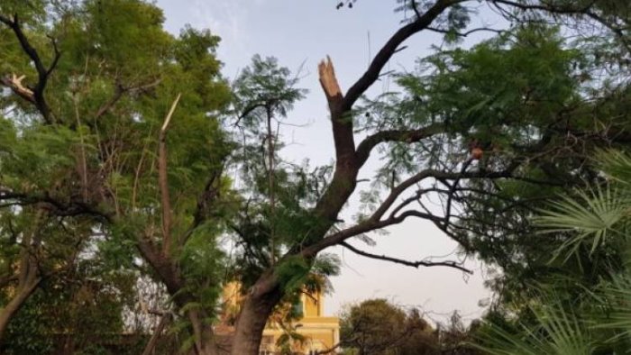 L'appartamento colpito si trova al secondo piano di un palazzo che si affaccia su via Cimarosa, all'angolo con via Mattia Preti. Il ramo, particolarmente spesso, ha divelto la ringhiera in ferro. Sul posto la polizia municipale, che ha chiuso la strada al traffico. La circolazione stradale è subito andata in tilt