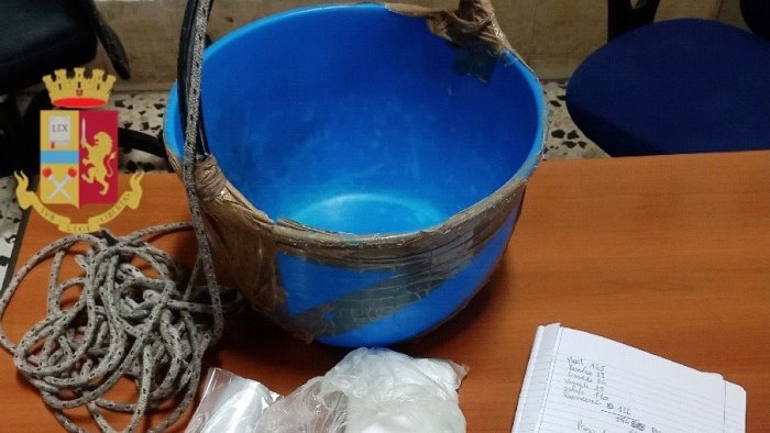 I falchi della squadra mobile e gli agenti del commissariato Vicaria Mercato, durante un servizio di contrasto allo spaccio di sostanze stupefacenti, hanno sorpreso un uomo che stava calando dal balcone un paniere a una persona in strada a bordo di uno scooter la quale, dopo aver inserito delle banconote nel contenitore da cui ha prelevato qualcosa, si è allontanata frettolosamente.