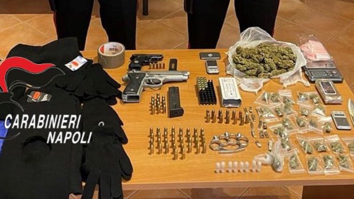 I carabinieri della stazione di Pomigliano, insieme a quelli del nucleo Cinofili di Sarno hanno arrestato per detenzione di droga a fini di spaccio e detenzione illegale di armi ed esplosivi una donna di 33 anni e suo figlio di 17.