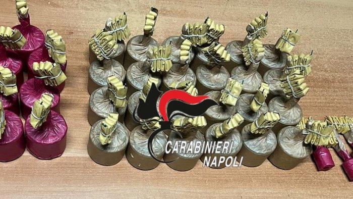 Perquisiti, i carabinieri hanno rinvenuto e sequestrato 6 batterie da 100 colpi l’una, 4 rendini artigianali e 31 ordigni esplosivi. Le 31 “cipolle” avevano un peso complessivo di 3 chili e 400 grammi e sono dovuti intervenire gli artificieri del comando provinciale di Napoli.