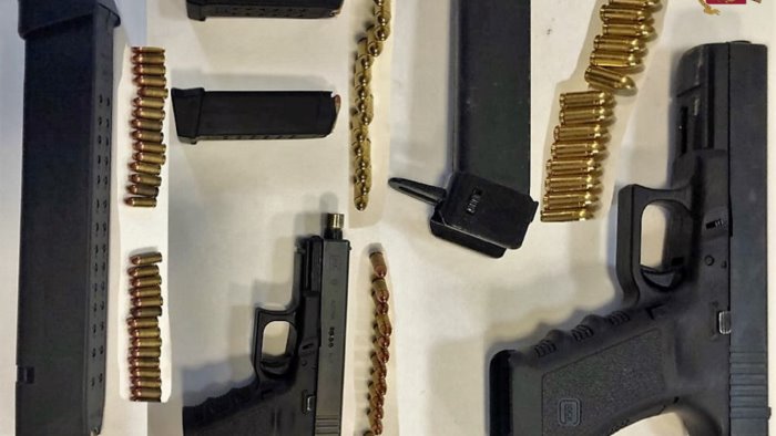 Gli agenti del commissariato Pianura hanno effettuato un controllo in via Pisani dove hanno rinvenuto e sequestrato, in un’intercapedine ricavata in un muro coperto da sterpaglie, tre buste contenenti una pistola “Glock” 19 e una pistola “Glock” 17, entrambe con matricola abrasa, e 78 cartucce di diverso calibro.