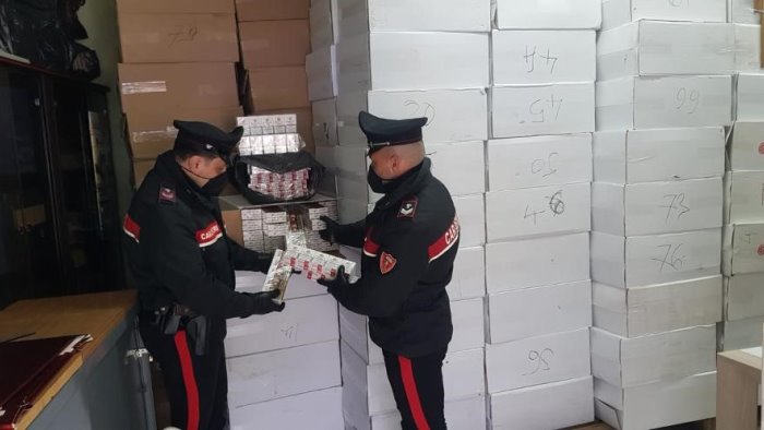 I carabinieri del nucleo operativo della compagnia Stella sentono rumore, fermento. Alcune persone chiacchierano e spostano del materiale. Dovrebbe esserci un garage, di certo non un magazzino e così i militari decidono di vederci chiaro. Quando spalancano uno dei pesanti battenti di quel cancello c’è un solo veicolo, fermo ma carico e poi scatoloni, file e colonne di scatoloni di cartone. E dentro, sigarette.