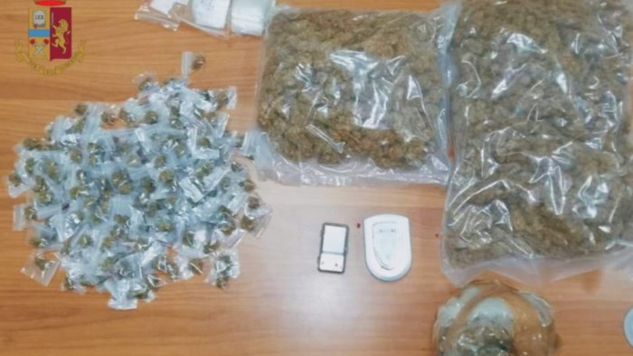 I poliziotti hanno recuperato il borsone al cui interno hanno rinvenuto 175 bustine e 3 buste contenenti 1,8 kg circa di marijuana, due bilancini di precisione e diverso materiale per il confezionamento della droga che sono stati sequestrati.