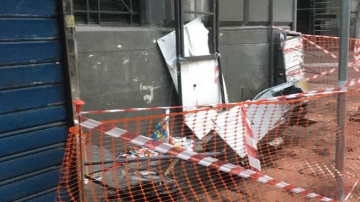 Galleria Vittoria, auto si schianta contro una cabina telefonica ed è black out