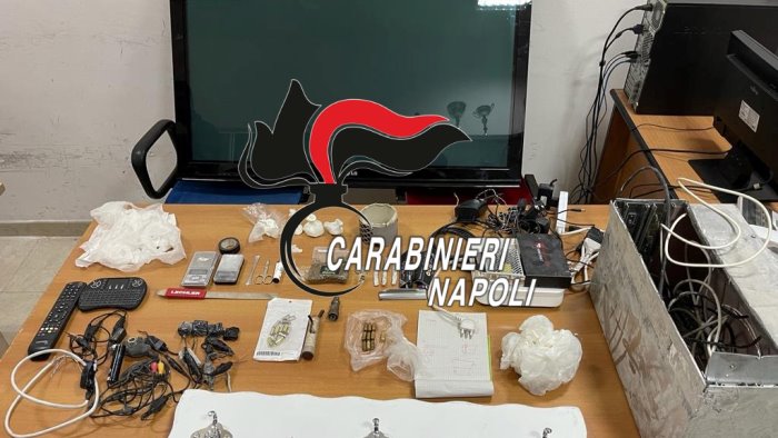 Scatta la perquisizione e le manette. Sequestrato un sofisticato impianto di videosorveglianza con 7 telecamere, 4 di queste installate all’esterno, e un televisore di 50 pollici dove erano trasmesse in diretta le immagini esterne e interne. E ancora una pistola clandestina artigianale compatibile con proiettili calibro 7,65 e 32 auto (in sostanza un cilindro metallico con un grilletto), 23 proiettili (13 sono a salve), 52 grammi di cocaina, 110 di hashish, una bustina di marijuana, materiale per il taglio e il confezionamento delle dosi.