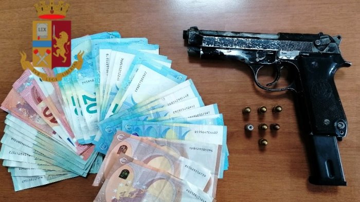 I poliziotti, poco dopo, nel transitare in via Pablo Picasso, nel piazzale antistante la stazione Cumana hanno intercettato la vettura con a bordo l’uomo corrispondente alle descrizioni e lo hanno bloccato trovandolo in possesso di una pistola Beretta con matricola abrasa e la canna modificata con 7 cartucce e 730 euro.