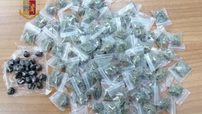 Gli agenti del commissariato Secondigliano, durante il servizio di controllo del territorio, nel transitare in via Monte Rosa hanno notato un uomo che, alla loro vista, si è dato alla fuga nelle vie limitrofe facendo perdere le proprie tracce. I poliziotti hanno rinvenuto, sotto la panchina su cui era seduto, una busta contenente 23 involucri con 33 grammi circa di hashish e 83 bustine di marijuana del peso complessivo di circa 135 grammi che sono stati sequestrati.