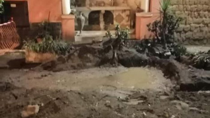 La parte di strada colpita, che è stata recintata, è tuttora sommersa dalla melma, cosi come le auto.