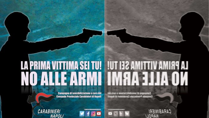 La diffusione di questa immagine avverrà su larga scala, nelle scuole del territorio, nelle caserme, nei centri parrocchiali, nei teatri, nei cinema e in tutti i presìdi di legalità della provincia". L'iniziativa ha trovato l'appoggio della Procura della Repubblica di Napoli, del tribunale per i minorenni, della Prefettura, della Curia napoletana e farà da apripista a tutta una serie di iniziative di sensibilizzazione promosse dai carabinieri di Napoli per "disarmare" i più giovani. Tra queste anche la realizzazione di una brochure destinata alle scolaresche nella quale sono elencati consigli e indicazioni preziose per non finire preda del richiamo delle armi.