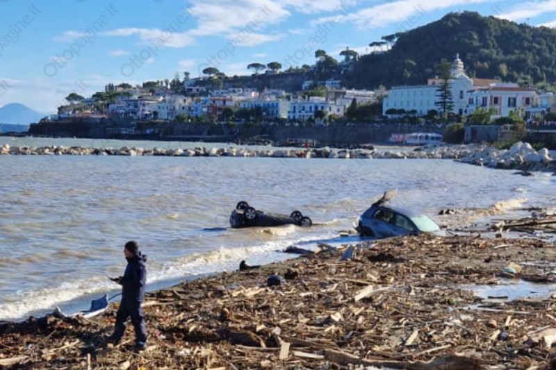 Casamicciola, il giorno dopo la devastazione. La luce del sole fa venire a galla tutti i danni danni provocati dall'enorme quantità di fango che si è abbattuto sul comune dell'isola verde. Decine le auto trascinate sulla spiaggia fino al mare.