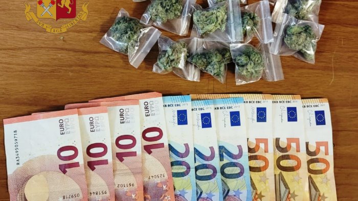 I poliziotti lo hanno raggiunto e bloccato trovandolo in possesso di 13 bustine contenenti circa 16 grammi di marijuana e 250 euro.