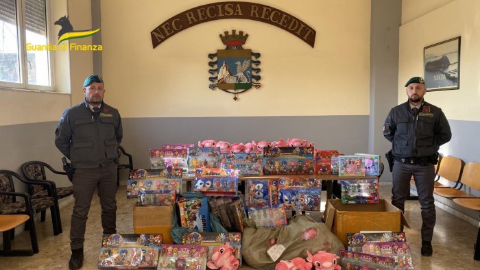 Befana sicura, la Guardia di finanza di Napoli ha sequestrato oltre 12mila articoli per bambini contraffatti e denunciato 6 persone.