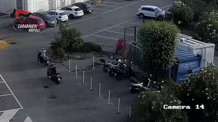 Sono accusati di questo due uomini destinatari di una ordinanza di custodia cautelare in carcere. L'attività investigativa, condotta dalla Tenenza Carabinieri di Quarto, sviluppatasi attraverso l'analisi delle immagini registrate dal sistema di videosorveglianza installato ed attivo nel centro commerciale, ha permesso di acquisire gravi indizi di colpevolezza nei confronti degli indagati in ordine alla commissione di ben sei furti di motoveicoli, commessi in un breve arco temporale - tra giugno e settembre 2022 - nel medesimo luogo, negli stessi orari e con identiche modalità operative.