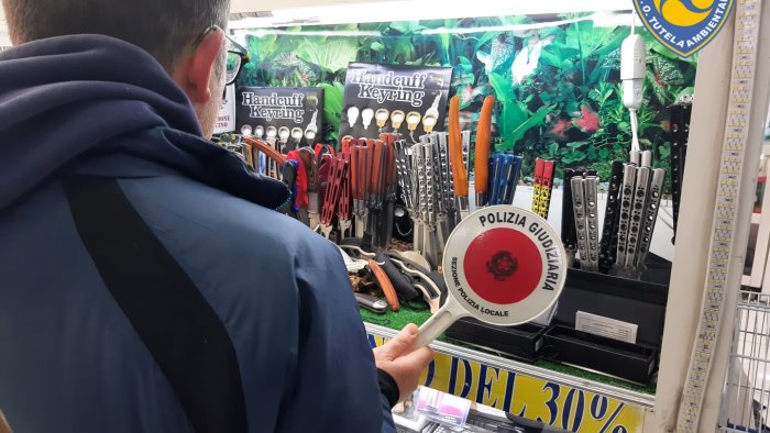 All'interno gli agenti hanno constatato come fossero in vendita anche numerosi coltelli. Alcuni di questi, così come ricostruito dai vigili, rientravano nella categoria di "armi proprie", dunque pericolose per le persone.