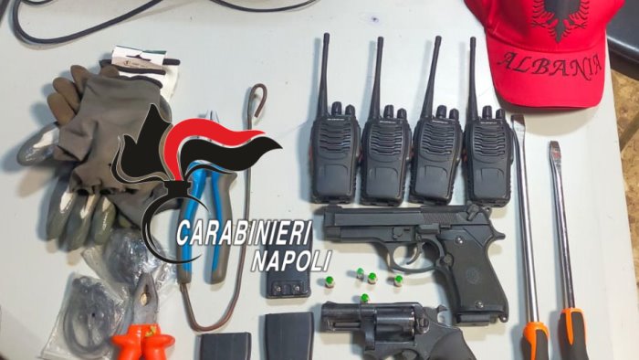 Intanto, nel veicolo rinvenuto un vero e proprio kit per rapinatori. Due pistole a salve, col serbatoio carico, attrezzi per lo scasso e 4 radio portatili. Il materiale è stato sequestrato, continuano gli accertamenti per risalire ai fuggiaschi.