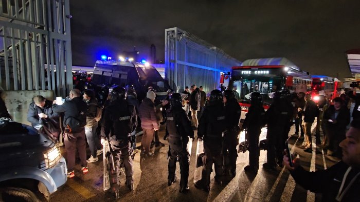 Il bus che dalla stazione centrale li ha portati verso gli alberghi nei quali alloggiano è stato bersagliato da razzi segnalatori e lancio di oggetti. Non si registrano feriti, ma la guardia è alta: uno degli hotel è sorvegliato a vista dalla polizia.