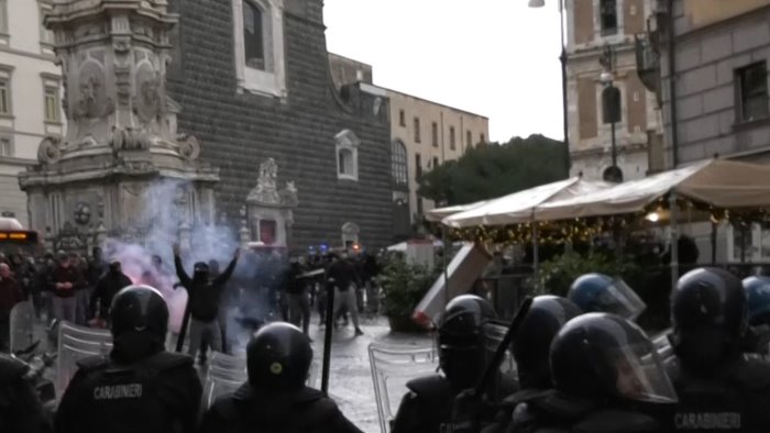 L'inferno dura 40 minuti. Il campo dello scontro è via Calata Trinità Maggiore, trasformata in uno scenario di scontro armato. Un'auto della polizia va in fiamme altre due vengono danneggiate, sedie, tavolini, bottiglie lanciate con tutta forza.