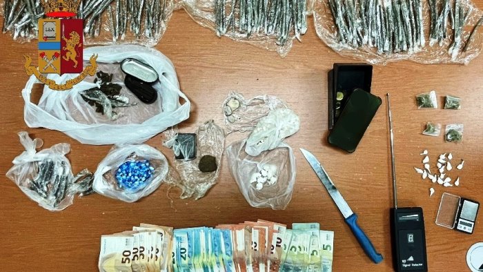 Gli agenti della squadra mobile e del commissariato Scampia hanno effettato un controllo presso l’abitazione di un uomo in via Antonio Labriola dove hanno trovato numerose stecche e pezzi di hashish per un peso di circa 377 grammi, 5 involucri contenenti circa 104 grammi di eroina, alcuni involucri contenenti circa 30 grammi di cocaina, 4 bustine contenenti circa 4 grammi di marijuana, diverso materiale per il confezionamento della droga, un bilancino di precisione, un cellulare, un rilevatore di microspie e 1625 euro.