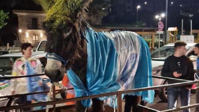 Un asino che sfila in città con i colori del Napoli, denunciati gli autori