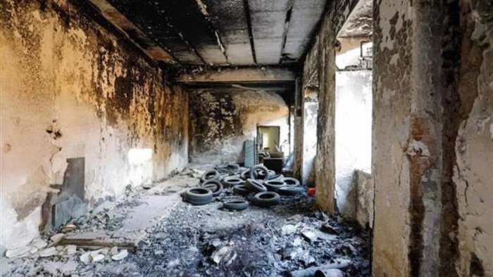 Un incendio si è sviluppato nell'ex clinica Villa Russo a Miano. Ad andare a fuoco è stato il portone di legno della struttura.