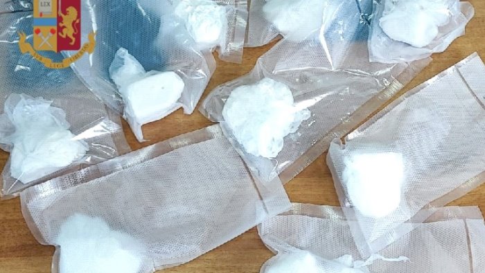 I poliziotti hanno bloccato l’uomo trovandolo in possesso di 53 bustine contenenti circa 20 grammi di ketamina, 61 involucri contenenti circa 25 grammi di ecstasy e 190 euro.