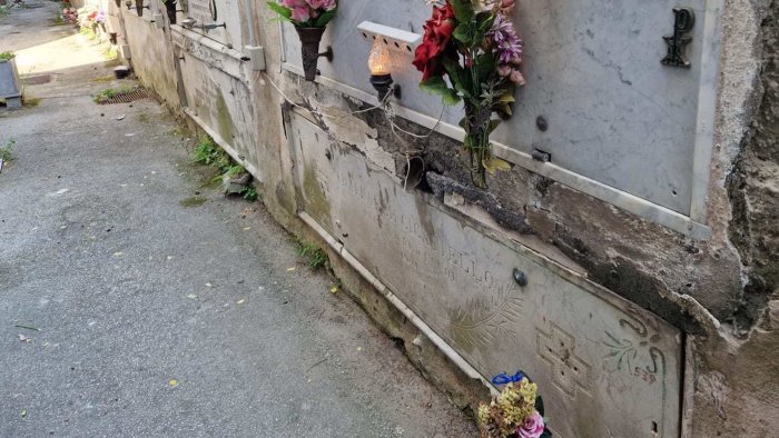 Lapidi murarie spaccate e resti di scheletri a vista, cedimenti parietali in corrispondenza dei loculi, radici di alberi che sollevano percorsi pedonali creando pericolosi dossi, ingente quantità di fogliame malamente accantonata ai piedi degli alberi fra i monumenti funebri privati rendendoli non accessibili tanto che i cittadini si dotano in proprio di scope per aprire i varchi e avvicinarsi alle cappelle.