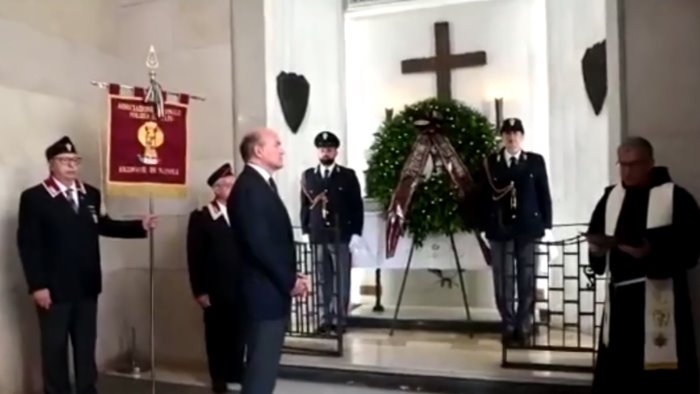 Il questore di Napoli, Maurizio Agricola, si è ufficialmente insediato questa mattina: prima di entrare nel suo nuovo ufficio ha deposto una corona di fiori al il Sacrario in onore dei caduti della Polizia di Stato, presso l'ingresso della questura di via Diaz.