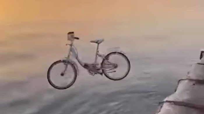 Si prende la rincorsa, si punta verso il mare, poi si scende al volo dal sellino della bici rischiando di farsi male o di far male a qualcuno e si lascia che il veicolo a due ruote precipiti in acqua.